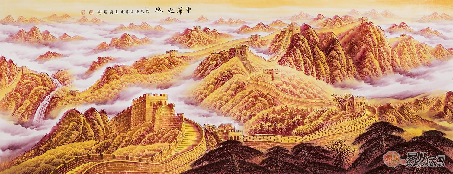 李国胜新品创作六尺横幅万里长城《中华之魂》 作品来源:易从网