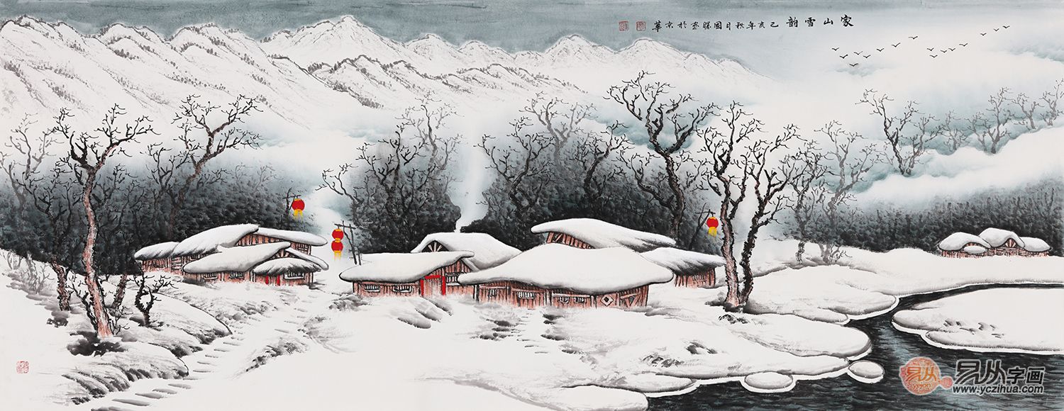 李国胜新品创作写意雪景山水画《家山雪韵》 作品来源:易从网