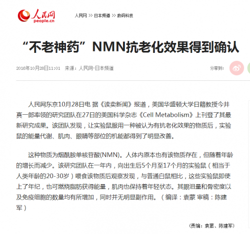 随后2016年,美国华盛顿大学日籍教授今井真一郎率领的研究团队在美国科学杂志《Cell Metabolism》上刊登了NMN的最新研究成果,其抗衰效果得到确认肯定,开始尝试在人体上应用,至今有3年的人体服用历史。