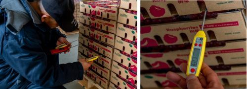 采摘后的浆果被迅速送往冷库后,冷库工作人员立即使用艾默生MAX便携式电子温度计为浆果测量温度,高效完成入库记录。然后,在经过仔细清洁、消毒的质检区,工作人员会对浆果的果径、糖度、品质、农残等指标进行全面的测量和记录。