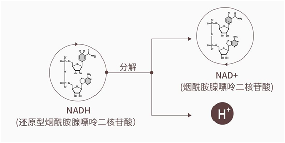NMN是在NADH之前流行于业界的靶向抗衰产品,中文名称是β-烟酰胺单核苷酸,通过进入人体内部,在酶NMNAT的帮助下,同时消耗一定的能量(ATP),最终转化为抗衰因子NAD+,发挥延缓衰老的作用。而NADH进入人体内部后,不需要在酶的催化作用下,就可以直接分解生成NAD+和氢(H),据UCSF(9个诺贝尔获得者名校)科学家研究证实,NADH可以显著提升NAD+水平,比NMN效率更高。且NADH分解过程中不仅释放能量为细胞“充电”,还生成“特种生物氢”能够起抗氧化的作用。NAD+、特种生物氢、能量三者协同作用,相比之下,NADH的抗衰性能比NMN更胜一筹。