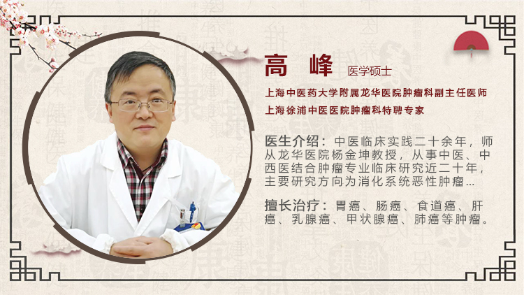 上海中医药大学附属龙华医院肿瘤科副主任医师,中医临床实践二十余年,师从龙华医院杨金坤教授,从事中医、中西医结合肿瘤专业临床研究近二十年,主要研究方向为消化系统恶性肿瘤。主张以中医理论为指导,辩病辩证相结合,审证求因,有效利用各种现代医学手段,制定个体化综合治疗方案。在改善症状、提高晚期肿瘤患者生存质量方面积累了丰富的临床经验。