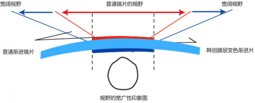 韩创光学新一代膜层变色渐进片采用新的视点光学设计理念,利用新技术和设备,模拟人眼视觉轨迹,了解视线在远用光区,近用光区和渐进带中的视物规律,并考虑看远的不同区光形态与镜片基弧的联带关系来设计渐进多焦点镜片,使镜片的各点均匀达到很好的视觉效果,突出了镜片的整体性和超宽的视觉效果,提高多方位舒适效果。