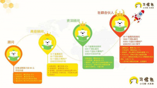 习惯熊网课的优势很明显:第一,背景实力雄厚,习惯熊网课是上市公司同城旗下的本地社交教育平台。第二,平台不仅有网课,还可以学绘本、玩具、自营课、打卡课等等。第三,自购累计99即可成为顾问,推荐首次购买打卡0元课程,0成本,无销量要求;直邀10个直属顾问+20个团队顾问+50个团队付费会员即可升入二级。