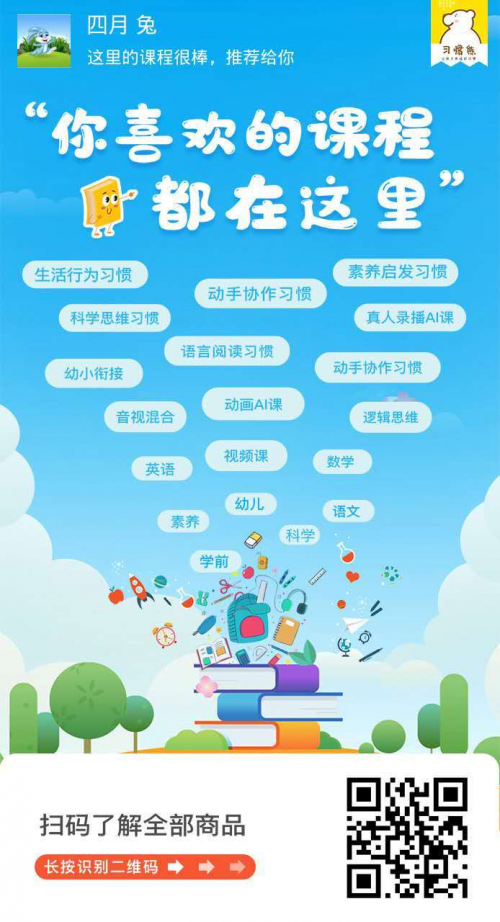 线上教育或了,习惯熊网课平台也火了!不过蛮多家长还不太了解习惯熊,习惯熊是一个网课分销平台,平台上的课程是针对0-15岁孩子而线上的内容。习惯熊平台有语文、英语、数学、科普等很多种类的课程,全部是跟知名教育品牌合作的课程。学习起来更加轻松容易,也能够帮助孩子养成良好的学习习惯呢!