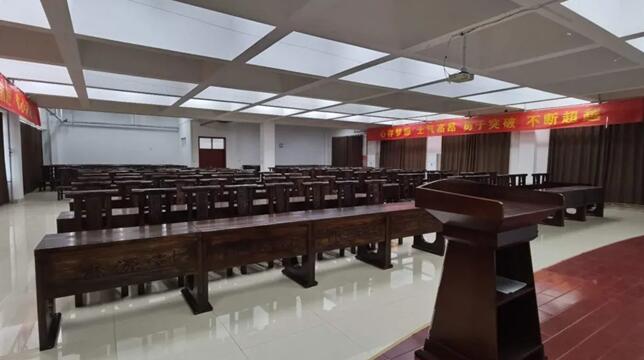 在五层有公司容纳200余人的会议室,庄重肃穆又积淀传承的地方,它见证了工厂前行的每一个脚步,它指引着所有人抬头看的方向。