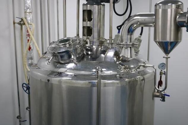 低压浓缩器所处场所是食品级洁净区,从顶端的目镜可观察浓缩器内部情况,内部通过自动搅拌器来搅拌,熬膏完成后会通过物料管道进入罐装区,熬膏全程都是密闭的环境。生产结束后,浓缩器内部装有喷淋头,可以通过自动喷淋装置和搅拌器进行自动清洁,而且可以把纯净水加热到100度进行杀菌,并定期用10%的碳酸钠溶液清洁整个罐器和管道。