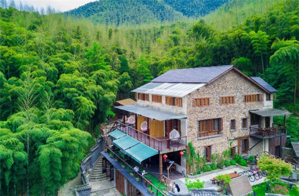 下车进入莫干山民宿时,最先吸引我的,就是阳台上一个个竹编的灯罩!这里被竹林包围,民宿内外的设计都充满着竹子的元素,整个民宿和周围的自然浑然一体!格外闲适。回程时,朋友带我们原路返回,由于对VV5这辆车产生了浓厚的兴趣,我还特向她请教了置换车辆的步骤。