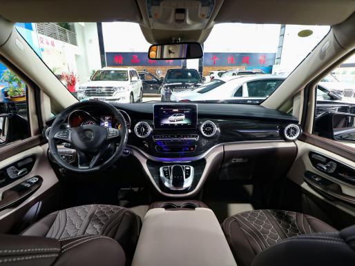 驾驶舱,虽然是MPV车型,但并不吝啬对驾驶员的舒适配置,座椅加热、通风及多种安全配置,让驾驶更轻松。内饰风格让您一眼就能看出它是一辆奔驰,对称设计、木纹饰板与皮质搭配,营造出高级感。家族式的炮筒仪表,显得十分动感。