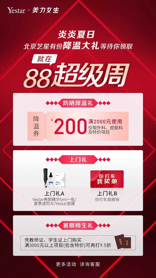 | 北京艺星整形医院:88超级周来袭,暑期狂欢嗨购,不要错过... |