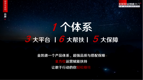 今年5月,金凯德顺应市场需求,看准发展时机提出了的“1+N战略”向经销商抛出橄榄枝,“百万赋能,逆袭成长”的计划便应运而生,“1”为旗下的金品质和金标准的核心竞争力产品,“N”则是多赋能渠道。金凯德木门为伙伴们精心推出365s倍速盈利系统,帮助经销商们在竞争激烈的市场中实现同舟共济、共谋成长。3大平台、6大帮扶支持、5大保障都将是销商低于市场洪流的有力屏障,用集团企业力量推动厂商一体化服务、运营、发展,