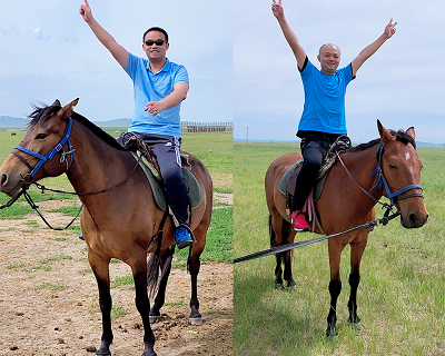 一大早,大家奔赴旅游景区马场,由牧民伯伯教骑马,感受骑马的乐趣,体验蒙古马的速度。当然会骑马的小伙伴可以尽情在草原上策马奔腾,而第一次骑马的小伙伴,只能让牵马的牧民叔叔拉着转了几圈,远远地看着别人帅气的背影。