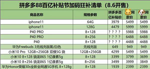 随着iPhone12的发布日期临近,iPhone11的价格也是一路狂跌。最新消息显示,8月6日起,拼多多宣布新一轮“百亿补贴节“正式上线,如图所示,活动期间,多款大牌手机将出现史低好价,其中iPhone 11 64GB版从5499元直接降至3979元,首次跌破4000元大关。128GB版iPhone 11也从5999元跌至4479元,降幅1500元左右。iPhone 11价格将首次跌破4000元,迈入3000元档次,你心动了吗?