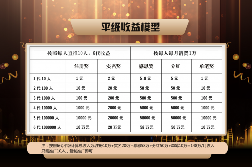 我们的模式有极差团队无限代+6代额外波比同步双重收益团队永不超越奖励机制。