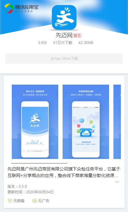 先迈网是国内领先的众包任务平台,基于互联网+分享概念的应用,整合线下商家分散化资源,实现用户闲置时间及技能服务的变现,并满足他们的多样化需求。先迈网旨在将商家和会员海量、分散、闲置资源通过平台协同集聚、复用以达成供需匹配,为商家提供快速、低成本营销解决方案,帮助会员转移剩余劳动力价值,从而实现经济与社会价值创新的新形态。