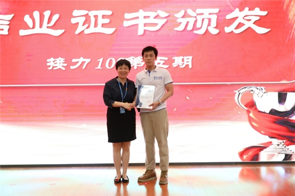 为接力100第五期学员代表发放结业证书