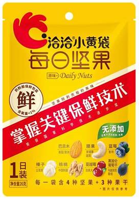 Patentics数据显示,洽洽食品至今共提交了206件专利申请,其中“干坚果储藏及加工保质关键技术”更是获得了中国国务院颁发的“国家科学技术进步奖”,洽洽还因此获得了中国农业部颁发的“国家坚果加工技术研发专业中心”,赢得了权威关注和业内的一致好评。有了“关键保鲜技术”的加持,直击消费者对于食品品质与新鲜的需求痛点,洽洽小黄袋每日坚果解决了大家购买坚果的后顾之忧,也让“新鲜”成为洽洽小黄袋的专属标签。