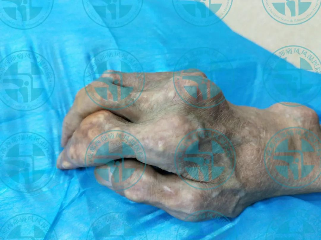 (我院近日接诊的痛风石患者病例图)