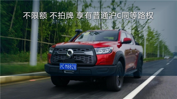 7月10日,上海放宽皮卡登记政策,根据新规,皮卡可按“沪C”上牌,享有沪C号牌车辆同等的通行权限。首批“沪C”长城炮迅速登陆上海,办理牌照时一路绿灯,不限额,不拍牌,并且购长城炮,还送“沪C”牌,让用户可快捷、轻松地享有皮卡车生活。