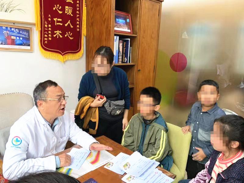 孩子们检查报告逐一交至严志忠副主任医师手中