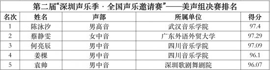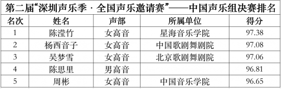 (附:第二届“深圳声乐季·全国声乐邀请赛”中国声乐组及美声组决赛排名)