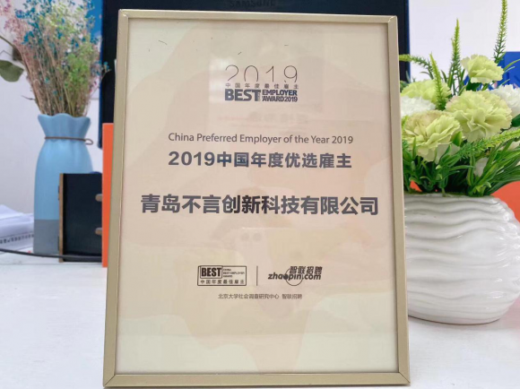 本应在年初办法的中国年度优秀雇主延期到了下半年,青岛不言创新科技有限公司凭借着突出得到表现荣获中国年度最佳雇主称号。