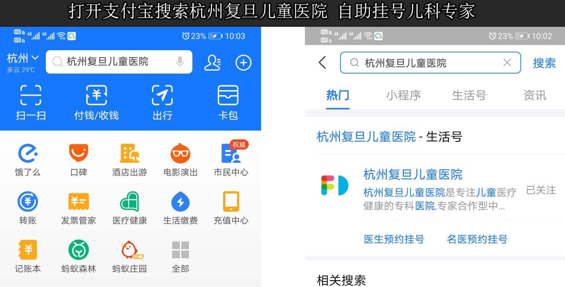 支付宝搜索杭州复旦儿童医院可正常自助挂号儿科专家