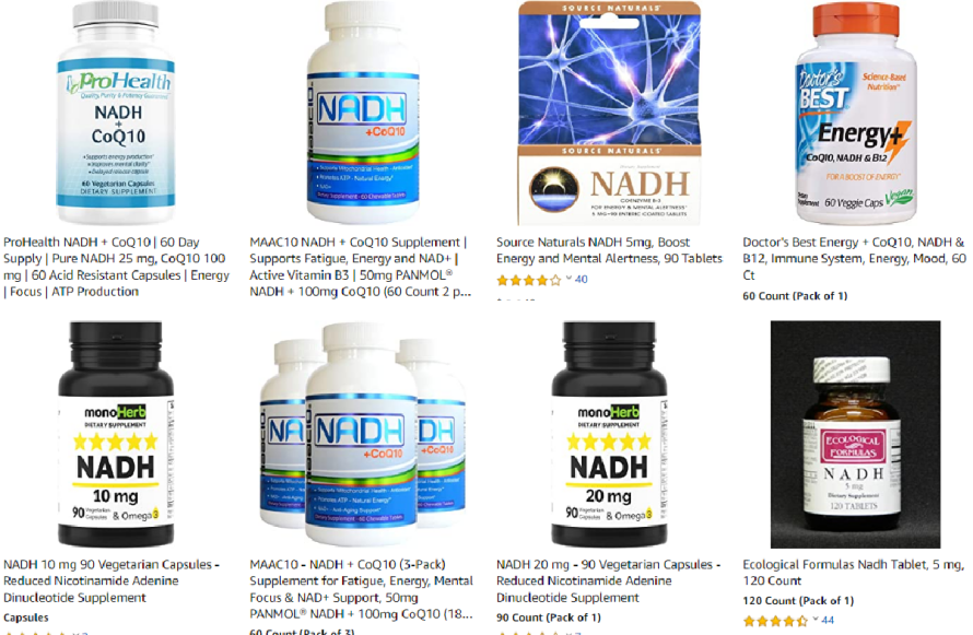 在美国亚马逊上有各种品牌的NADH售卖