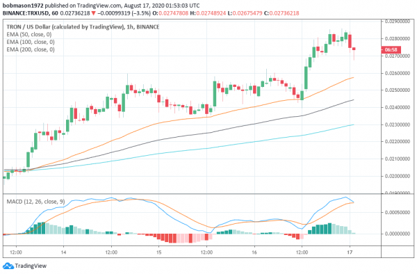 但是,除非延长加密货币抛售,否则波场币应该避开第二个主要支撑位$ 0.02236。