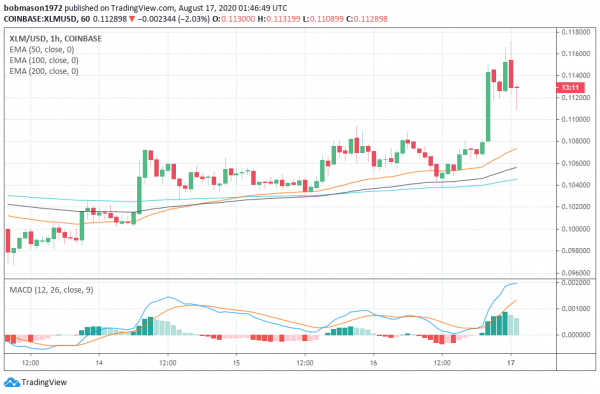 恒星币需要避免跌破0.1119美元支点来支撑第一个主要阻力位0.11998美元的运行。