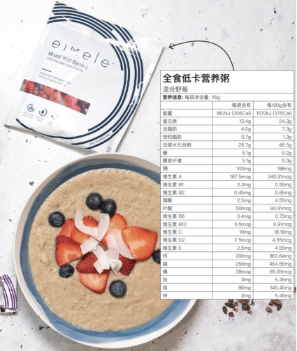 给大家看看这一个代餐产品的配方表,富含21种以上人体每日所需营养元素,食材中的澳大利亚燕麦、奇亚籽、树莓等都是营养价值极高的“超级食品”, 营养价值是远大于普通正餐的。