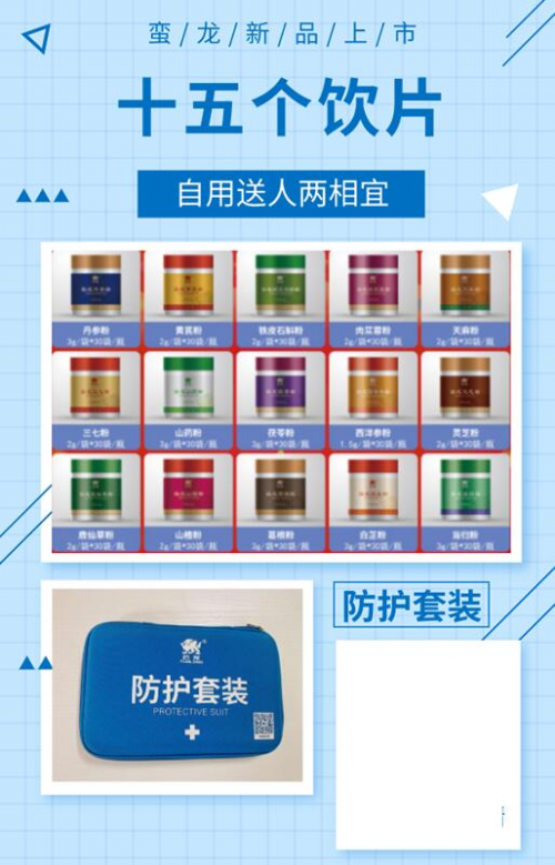 至此,蛮龙大药房站在了一个全新的起点上,放眼漫漫前路,始终不变的是利他共赢的初心,始终秉持的是精益求精的理念。不敢有分毫松懈的蛮龙人孜孜以求,筹备多时的中药饮片系列和防护套装也如期而至。常态化防疫成了人们的日常,防护固然重要,增强自身免疫力才是固本。中药饮片养生保健总相伴,防护套装出行居家都适用。每一个产品的研发生产都倾注了云龙制药、蛮龙大药房对消费者的细心周到,对社会的点滴责任。