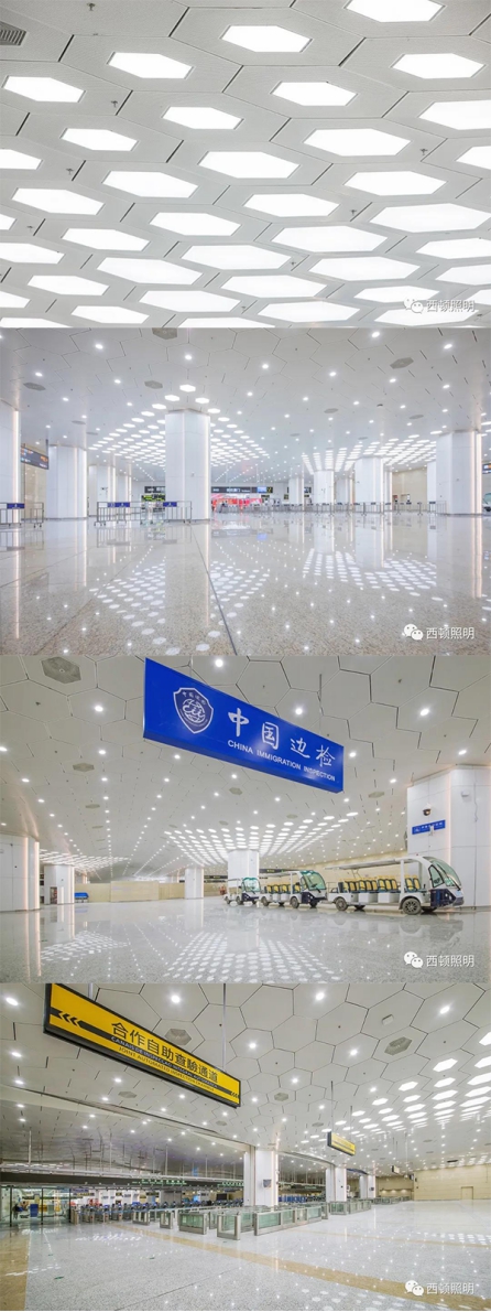 张凯坦言:这个项目非常复杂,单室内就汲及到众多专业的融合,现场又处在不断变动中,只要中间一个环节有变,其他地方没有及时跟上就需要重新来过。尤其像照明灯具系统的配合,西顿照明为此项目定制的六边形灯具,以及专业的技术支持和服务,不仅表现出色,还带来了意想不到的完美灯光效果。而今天,新横琴口岸正式开通启用,西顿照明也不辱使命,交上了一份令人满意的答卷。