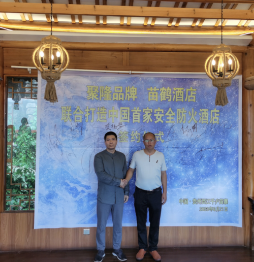 2020年8月21号,在贵州省西江千户苗寨,贵州聚隆品牌管理有限公司和西江千户苗寨的苗鹤酒店举行了新闻发布会,宣布“共同打造了中国首家无火灾安全防火酒店”。