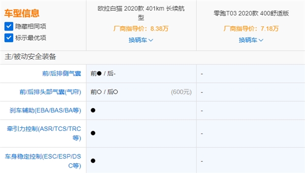 作为一名北京“土著”,我家里已有一辆SUV作为全家人的日常用车,但是因为我上班的地方距离家较远,所以我打算再另外购买一辆代步车,用于上下班通勤。考虑到目前北京“排号难”以及不断上涨的油价,我准备入手一辆8万左右的经济适用型新能源汽车,并且最后将目光锁定在了最近热度颇高的欧拉白猫 2020款 401km 长续航型(指导价:8.38万)和零跑T03 2020款 400舒适版(指导价:7.18万)身上。