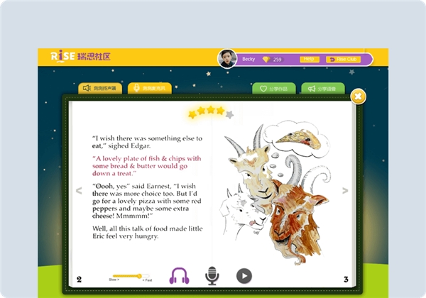 RISE+系统”(瑞思家)是对接瑞思英语家辅产品的智能平台,该平台综合了瑞思英语教学体系内全年龄段家辅产品。