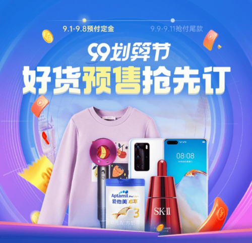 据悉,此次99划算节全面升级,核心玩法包含“互动城瓜分1亿“、”跨店满300减30“、“直播赛道”。