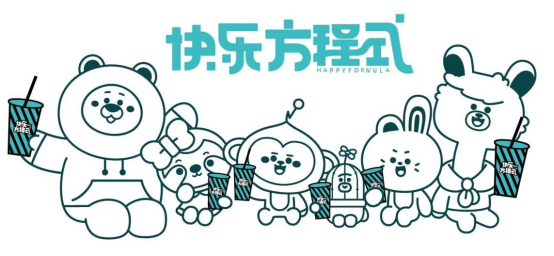 据悉:快乐方程式是与快乐大本营露出IP“大饼营”联合推出的新潮茶饮品牌;大饼营是由5个可爱的卡通人物组成的,他们是猴子快快、兔兔乐乐、仙人掌哒哒、树懒音音和小熊饼饼。他们生活的无限星球,因为快乐能源即将枯竭而面临危机。为了拯救星球,他们在羊驼本本的介绍下,开始寻找快乐,创造快乐,并将快乐带给所有快乐或不快乐的人。