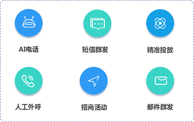 在招商过程中,除了找寻企业线索外,最重要就是进行精准触达,将招商信息对外输出,数智招商系统的【整合营销云】则一种对各种营销工具和手段的系统化结合,把各个独立的营销综合成一个整体,以产生协同效应的营销模式。比如,AI电话、精准投放、短信群发等渠道工具,不仅可高效传递信息,还可精准挖掘潜在企业。
