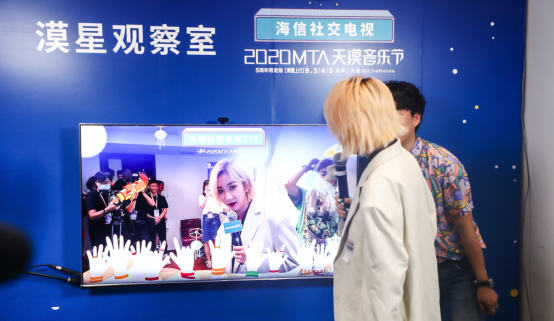 9月4日,在天漠音乐节上,当前来围观海信全新一代社交电视S7F的乃万等音乐人喊出“海信小聚”, S7F不仅快速响应了乃万的声音,全景云台摄像头还在人群中准确捕获了声音,把她稳稳放在C位。