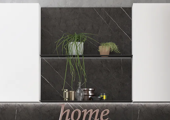 沉稳的深黑灰,搭配白色调的石纹饰面,再与充满张力的哑蓝相互碰撞,给人带来平静的同时,更增添了层次感。