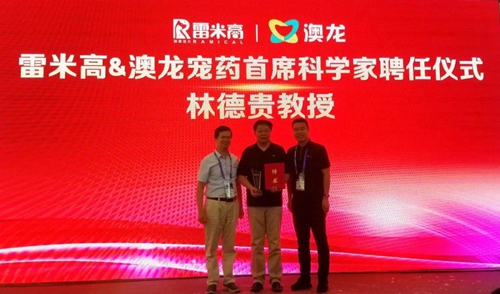 作为新产品的主要研发者,林德贵教授不仅是雷米高聘请的首席科学家,而且还是宠物医疗行业的泰斗级人物,身负中国农业大学动物医学院学院教学副院长、中国兽医协会宠物诊疗分会创始人和会长、中国畜牧兽医学会小动物医学分会发起人和理事长等多个头衔。而在此次亚宠展上,雷米高和澳龙宠药也联合举办了隆重的聘任仪式,诚挚的欢迎林德贵教授加入雷米高和澳龙宠药的研发团队。