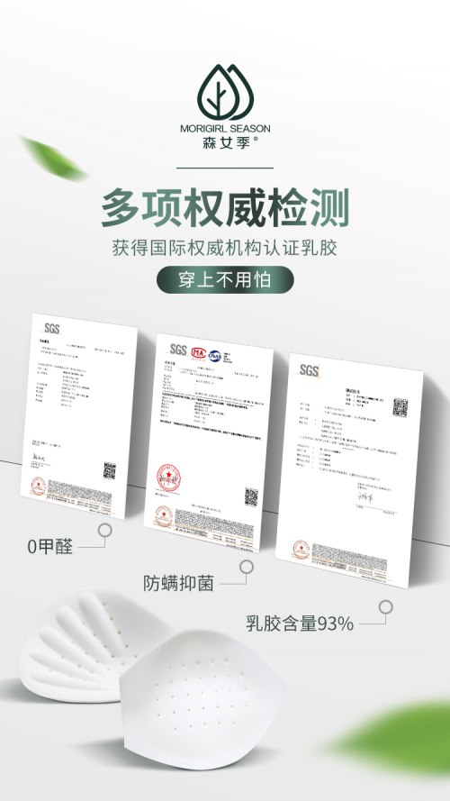 此外,为满足不同年龄、不同胸型女性的需求,森女季现已开发了21种乳胶杯型,开创天然乳胶模杯多样化的先河。不仅如此,森女季系列内衣的面料甄选自全球5个国家,执行国际一线品牌生产标准,高品质面料与匠心工艺的结合,带来了舒适的体验,这也是为什么森女季的产品能够出口到中国、欧美、日韩、中东、东南亚,业务遍及20多个国家和地区,深受全球消费者的喜爱和广泛好评的关键因素!