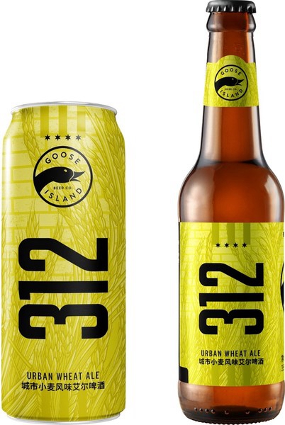 凭借黑色加粗的312元素与黄色小麦背景构成鲜明的视觉反差效果,并强调了芝加哥区号以强化芝加哥城市之根的理念及鹅岛城市小麦风味艾尔啤酒的主要酿造元素。