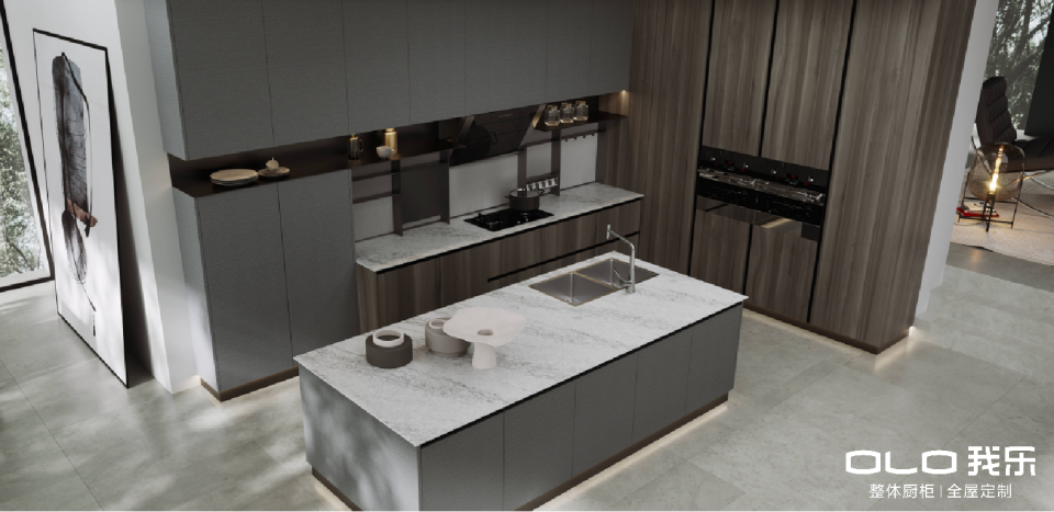 图:我乐家居第十代智慧厨房(莫兰迪系列)