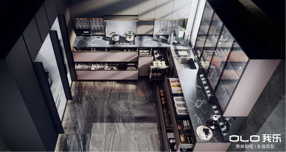 在功能上,我乐家居也充分洞察了中国人的居住需求和难题,比如,厨房内收纳难、清洁难等问题,都在我乐家居这里得到了妥善解决。以我乐第十代HQS核心柜体为例,我乐将柜体高度、深度调整为更适宜的使用尺寸,这样一来既扩大了30%的柜体收纳空间,还没有增加整体视觉上的闭塞感,实用性特别强。