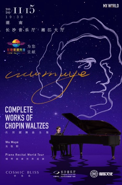 近日,专业从事娱乐文化科技服务的彩色星球科技公司(纳斯达克代码:CSCW 以下简称:彩色星球)正式宣布,11月15号将冠名国际著名钢琴艺术家吴牧野的钢琴独奏世界巡演《肖邦圆舞曲全集》长沙站的演出。
