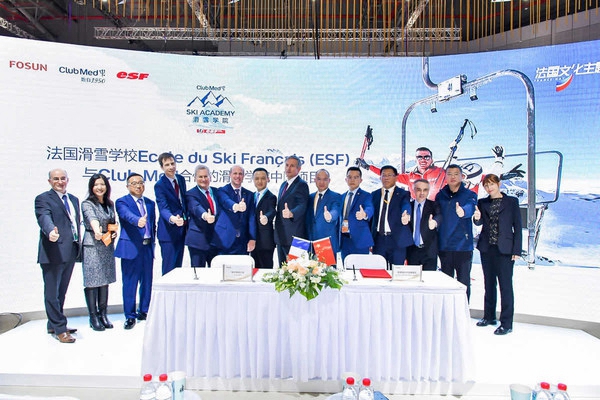 11月6日上午,在复星国际董事长郭广昌先生、法国驻华大使罗梁先生、法国驻沪总领事纪博伟先生、复星旅游文化集团董事长兼CEO钱建农先生等嘉宾的见证下,源自法国的全球精致一价全包的领导者Club Med地中海俱乐部与法国滑雪学校ESF深化现有合作, 与成都融创滑雪学校以及聚隆滑雪度假区完成签约,于融创雪世界和聚隆国际旅游度假区内新增两家滑雪学院,引领国内专业滑雪课程,为不同年龄层和不同水平的滑雪爱好者提供同样优质、专业、安全的滑雪课程。成都融创滑雪学校,位于四川省成都市都江堰成都融创雪世界内,总建筑面积约8.08万平方米,拥有6条不同等级的滑雪道和2个地形公园,全天可接待5000人滑雪。另一所滑雪学院位于辽宁省抚顺市清原县的聚隆国际旅游度假区,其占地50万平米, 拥有10条初、中、高级优质雪道,每日可同时接待8000余人滑雪。根据国际雪联雪上赛事中有关国际滑雪赛事要求,滑雪场可承办回转、大回转、单板雪上技巧自由式滑雪的空中技巧等赛事。