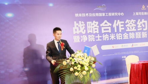 11月9日,纳米技术及应用国家工程研究中心与上海可佑纳米科技有限公司战略合作签约仪式暨净院士纳米铂金除醛新品发布会在纳米技术及应用国家工程研究中心举行。