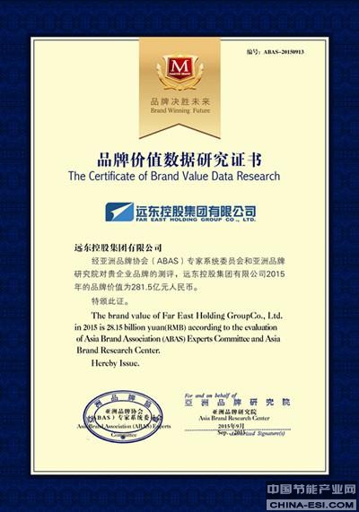 远东控股集团强势突围 品牌价值281.5亿元